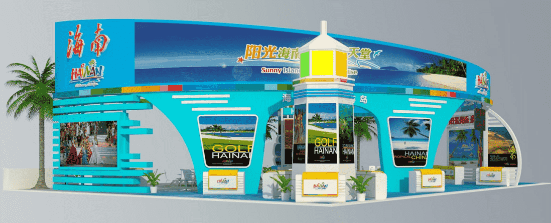 展覽設計搭建公司為海南省旅游委員會做的展覽展臺搭建,此次展會設計策劃,